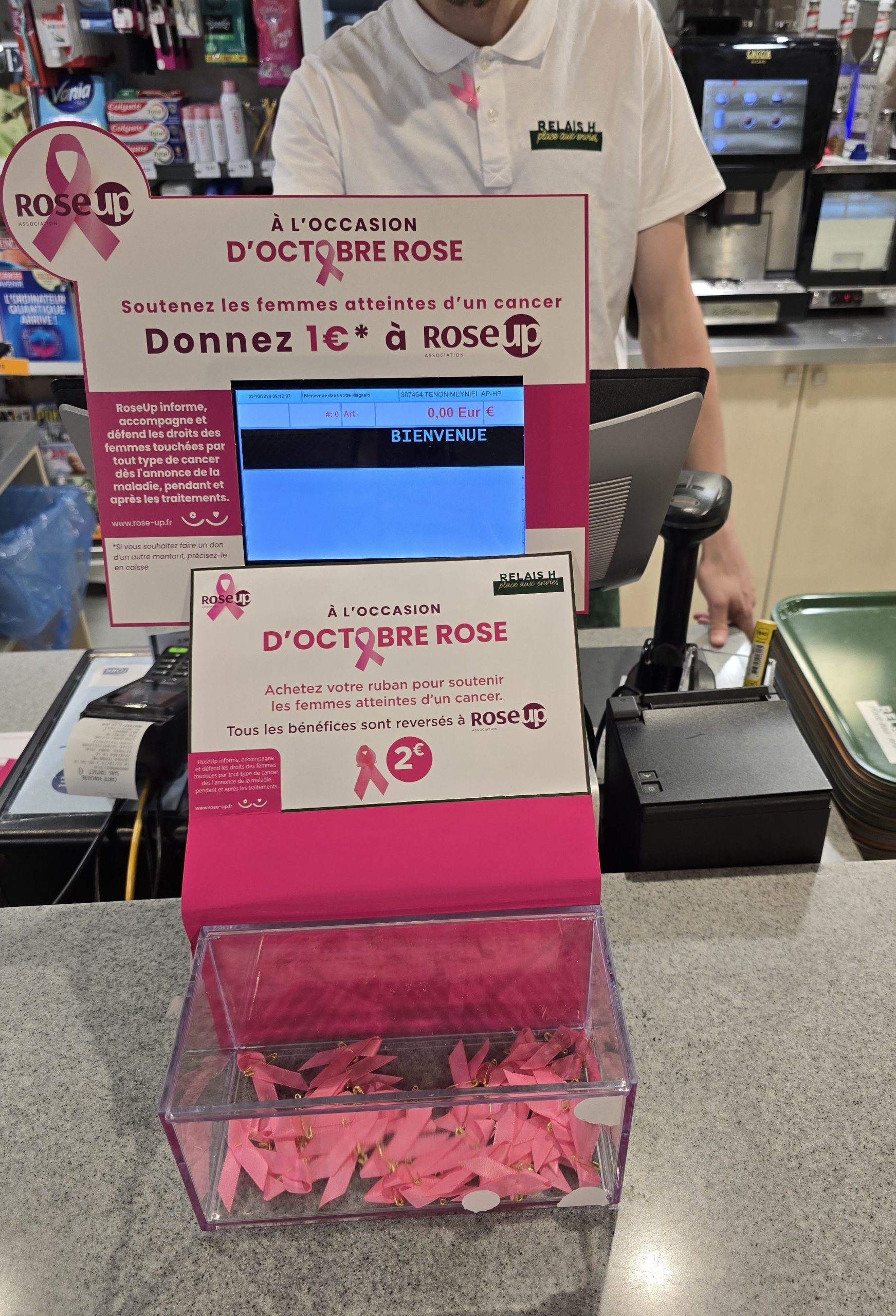 Ils pourront également dans les magasins Relais H acheter un ruban rose à 2 € dont l’ensemble des bénéfices sera reversé à l’association RoseUp, qui accompagne les femmes atteintes de tout type de cancer. De plus, des exemplaires du magazine Rose Magazine seront distribués gratuitement dans ces magasins pour sensibiliser et informer les patientes et leurs familles.