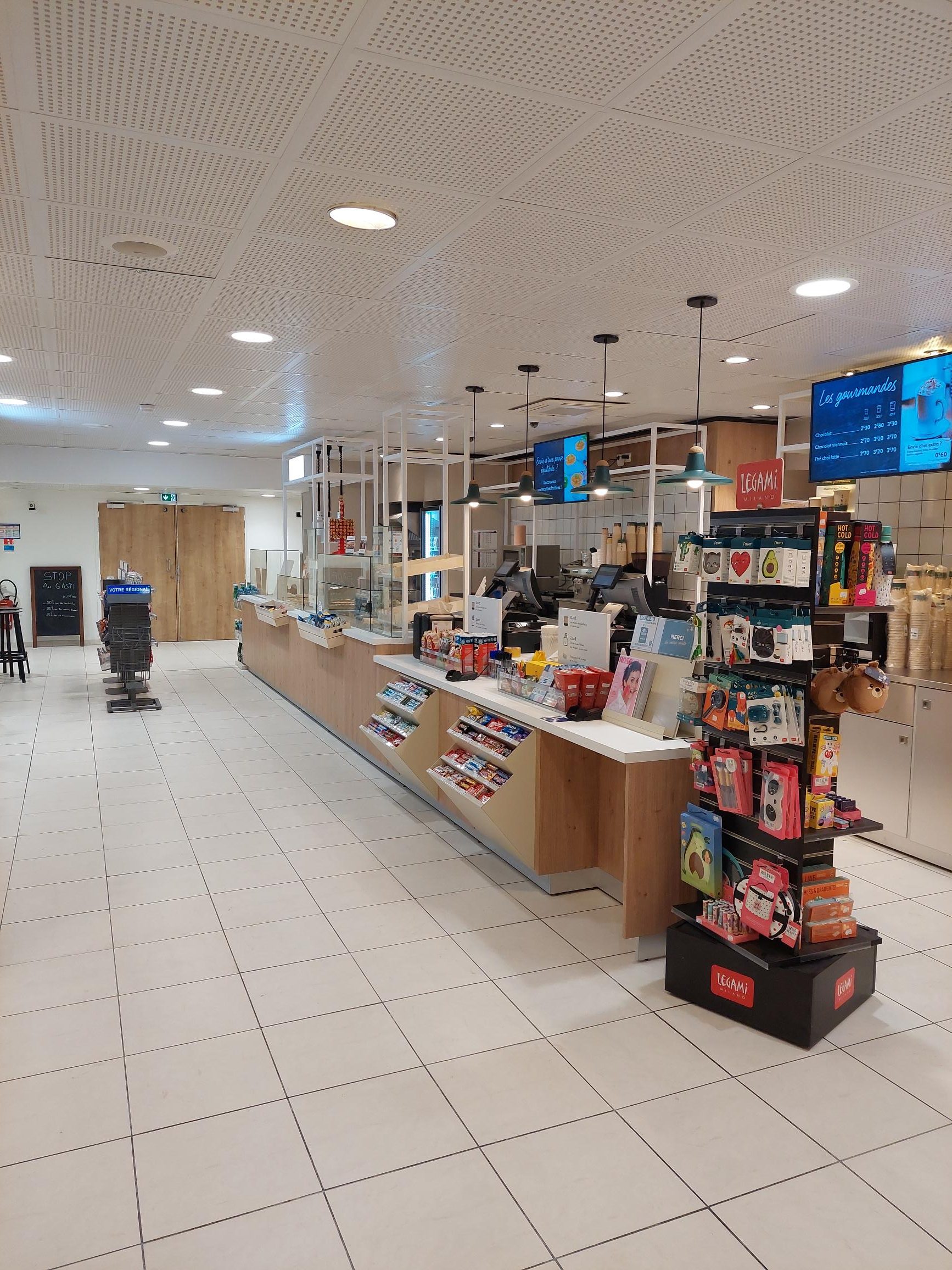 Un lieu complètement rénové qui propose un bar à salades, une offre de sandwichs et boissons en libre service, du snacking chaud et des desserts plus gourmands les uns que les autres. Vous pourrez savourez tous ces produits dans les différents espaces de la salle de consommation et la terrasse.