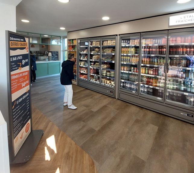 Vous aurez le choix entre sandwichs, salades, boissons fraîches en libre-service, un bar à salades, un bar à pâtes, un coin grillades, du snack chaud, des boissons chaudes gourmandes et toujours notre gamme de desserts pour les amateurs de sucré.